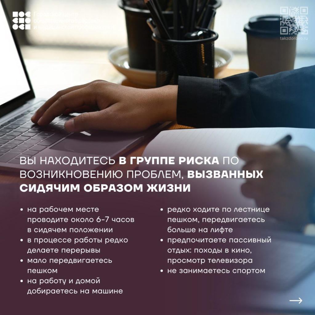• Физическая активность: Регулярные тренировки (плавание, бег, силовые) важны, но они не компенсируют 8-10 часов сидения без перерывов, поэтому важно уменьшать общее время сидения.