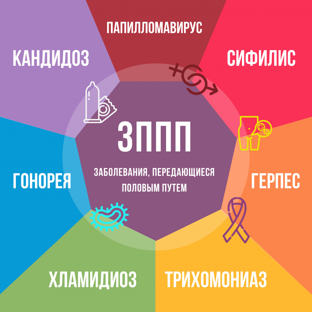 Инфекции, передающиеся половым путем (ИППП), включают более 30 бактерий, вирусов и паразитов, основные из которых — хламидиоз, гонорея, сифилис, трихомониаз, ВИЧ, гепатит B, ВПЧ (вирус папилломы человека) и герпес. Они передаются при вагинальном, анальном и оральном сексе, вызывая воспаления, зуд, выделения, а иногда — бессимптомное носительство, приводящее к бесплодию.