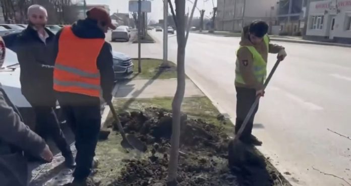 Назрань уверенно движется вперёд, становясь чище, уютнее и зеленее 🌿 Работы по озеленению развернуты на улице Муталиева на территории стоянки у городской больницы.
