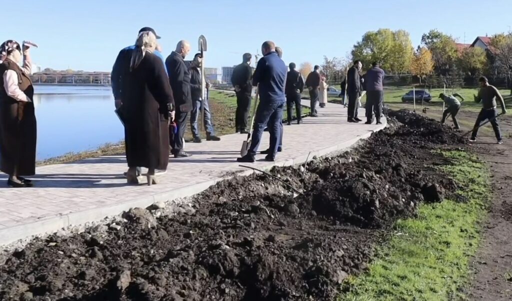 Сегодня в Назрани прошла замечательная акция по озеленению территории пруда, где завершается благоустройство в рамках проекта «Малые города и исторические поселения».