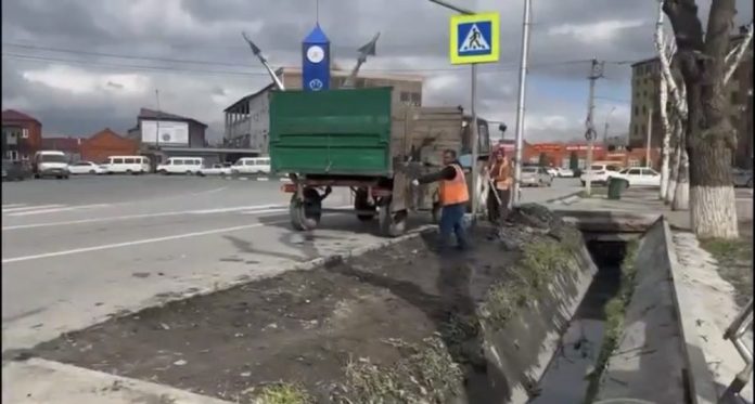 В Назрани началась профилактическая очистка ливневых стоков. В настоящее время работы ведутся по проспекту Базоркина.